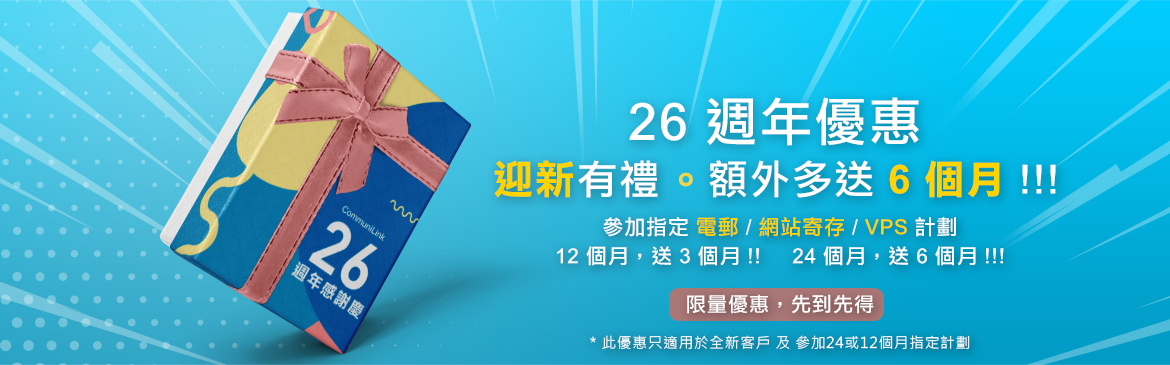 - - PHP / MSQL 版本按設定服務時的版本為準。如客戶於設定服務後需更改 PHP / MSQL 版本,客戶需於主動向 CommuniLink 提出申請。